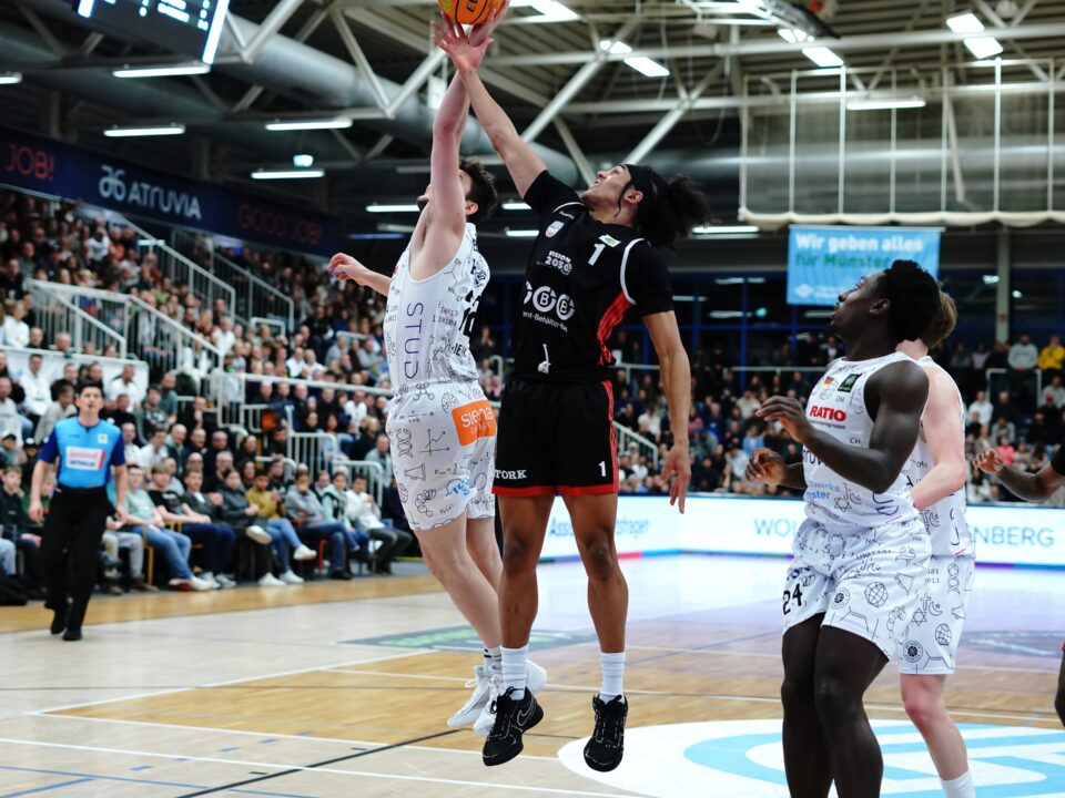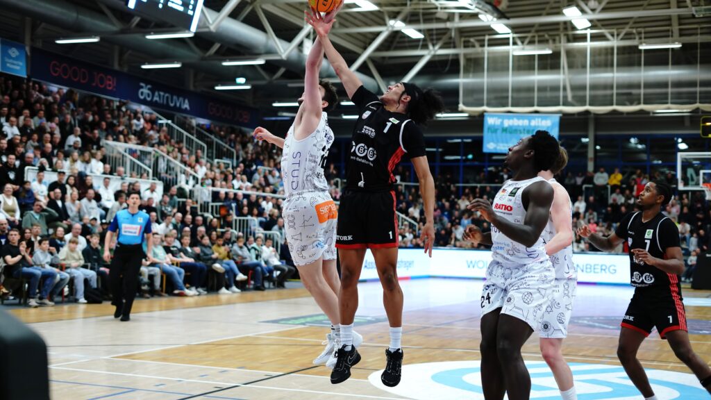 In der Schlussphase der regulären Spielzeit hielt es die Fans in der gut besuchten Rundsporthalle nicht mehr auf den Sitzen. Kurz übernahmen die Gastgeber nach einem Wurf von jenseits der 6,75 Meter wieder die Führung. Kurz vor Ablauf der Uhr aber setzte Stefan Weß den vermeintlichen Lucky Punch für Münster. Rund zwei Sekunden blieben den Sparkassenstars für den letzten Angriff. Sie brachten den Ball nach mehreren Aktionen noch durch die Reuse. Der Treffer zählte, es ging in die Verlängerung.