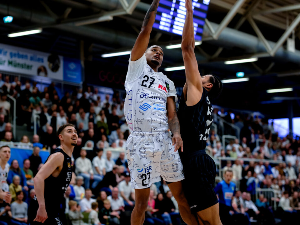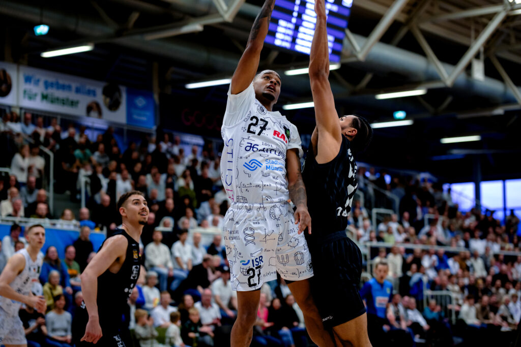 9. April 2025(ts) Gästecoach Eric Detlev bescheinigte den Uni Baskets einen lange starken Auftritt. „Münster hat für mich sehr toll gespielt und uns sehr stark unter Druck gesetzt.“ Dennoch stand am Ende beim 80:87 gegen die Tigers Tübingen für tief enttäuschte Münsteraner die zweite bittere Niederlage in Folge in einem direkten Duell. GAMEDAY.MS fasst die Statements von Cheftrainer Götz Rohdewald und weiteren Protagonisten aus der Pressekonferenz und Mixed Zone zusammen.