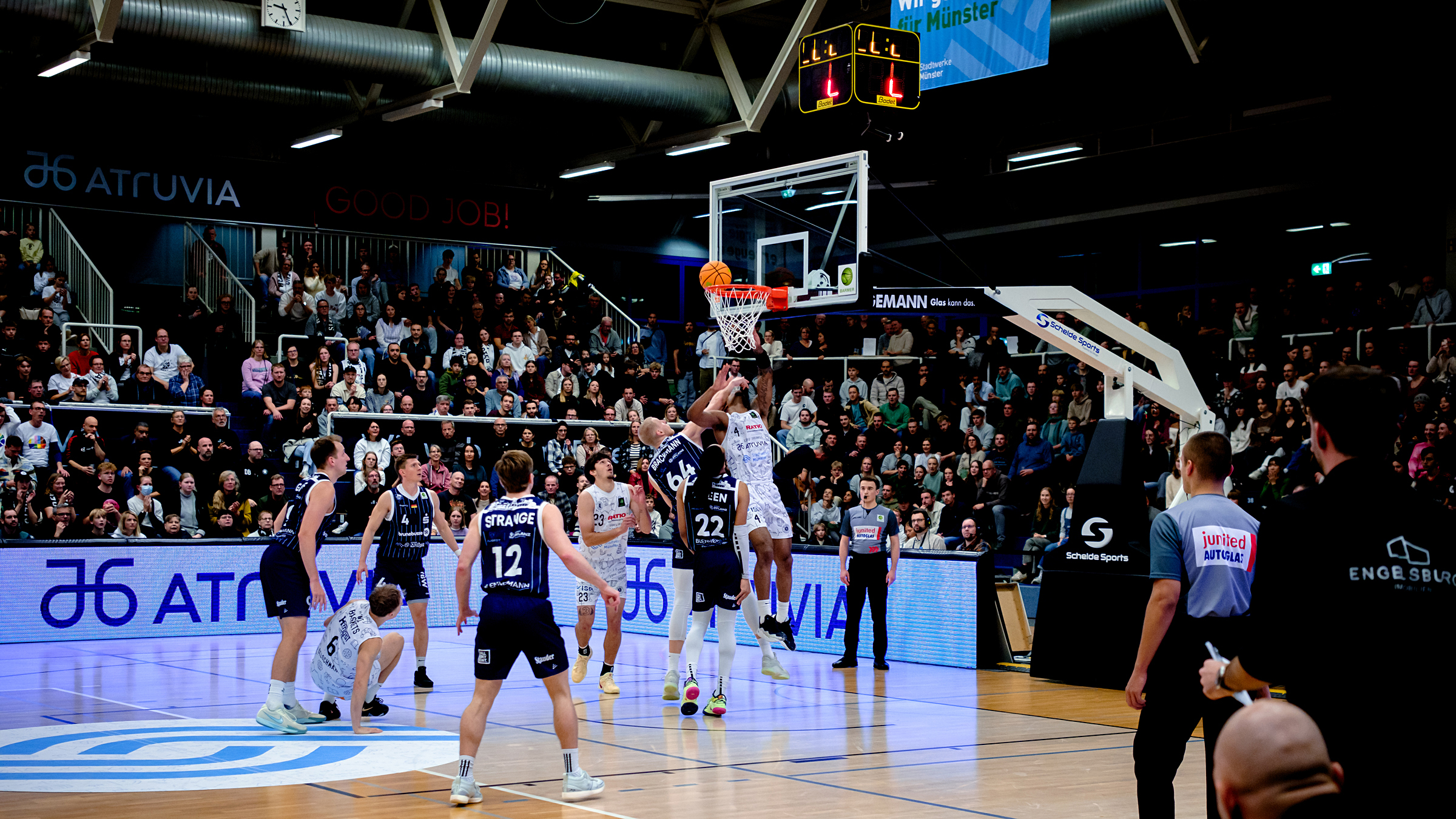 22. Oktober 2025(ts) Nach dem Sieg im Westfalenderby in der Europa-Halle in Karlsruhe nachlegen: Der Atruvia-Day führt die Uni Baskets am Samstagabend in die Fächerstadt, wo ein immens gereiztes „Löwenrudel“ wartet. Die PS Karlsruhe Lions dürften nach drei Niederlagen in Folge gerade zu Hause auf eine Trendumkehr brennen. Hochball am 5. Spieltag der BARMER 2. Basketball Bundesliga ProA ist um 19.30 Uhr. Sporteurope.TV überträgt live. Die Fans der Uni Baskets feiern gemeinsam beim XXL-Viewing im „Schaf“. Dort heißt es ab 18.30 Uhr: Herzlich willkommen!