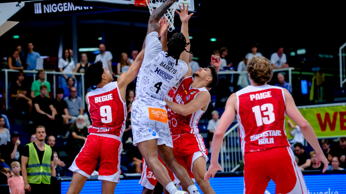 Nach personellen Ausfällen sind die RheinStars inzwischen wieder komplett besetzt und keinesfalls über den aktuellen Tabellenplatz 16 einzuschätzen, wie der deutliche Erfolg gegen Kirchheim verdeutlichte. Unter den Körben beeindruckte Rückkehrer Elisias umgehend durch seine Präsenz und sein Timing. Als quasi Neuzugang veränderte Aufbauspieler Haris Hujic die Kölner Spielweise, ausgestattet mit einem feinen Gefühl für alle Situationen. Auch Center Björn Rohwer (11,3 Punkte), der Ex-Münsteraner Jasper Günther oder Rupert Hennen agieren auf hohem ProA-Niveau. Insbesondere die Kölner Guards sind sehr schnell und aktiv. Hier sticht noch einmal Michael Miller heraus, den die Uni Baskets beim 79:76-Erfolg im Season Opener vor dem Saisonstart nicht in den Griff bekamen. Der US-Amerikaner ist ein wesentlicher Dreh- und Angelpunkt im Kölner Spiel, bringt viel Europa-Erfahrung aus Profi-Stationen in Karlsruhe, Kirchheim, Bristol und Den Helder mit.