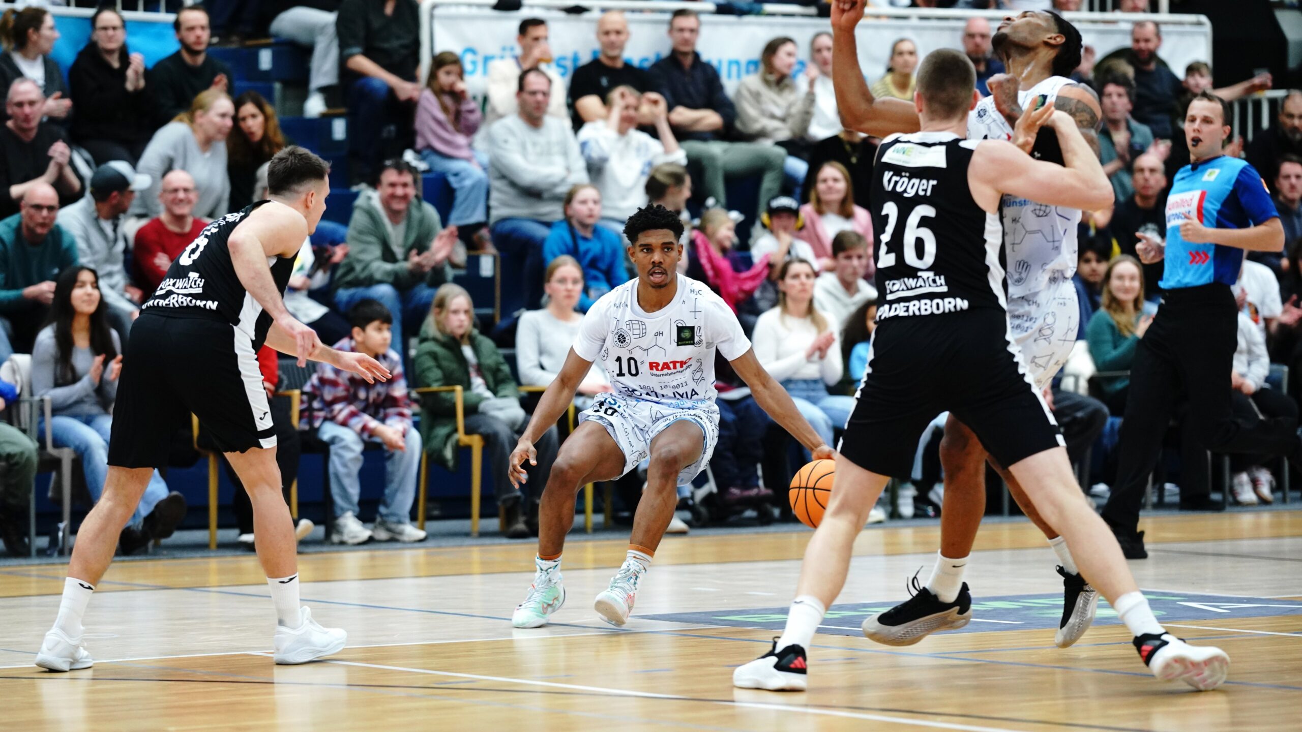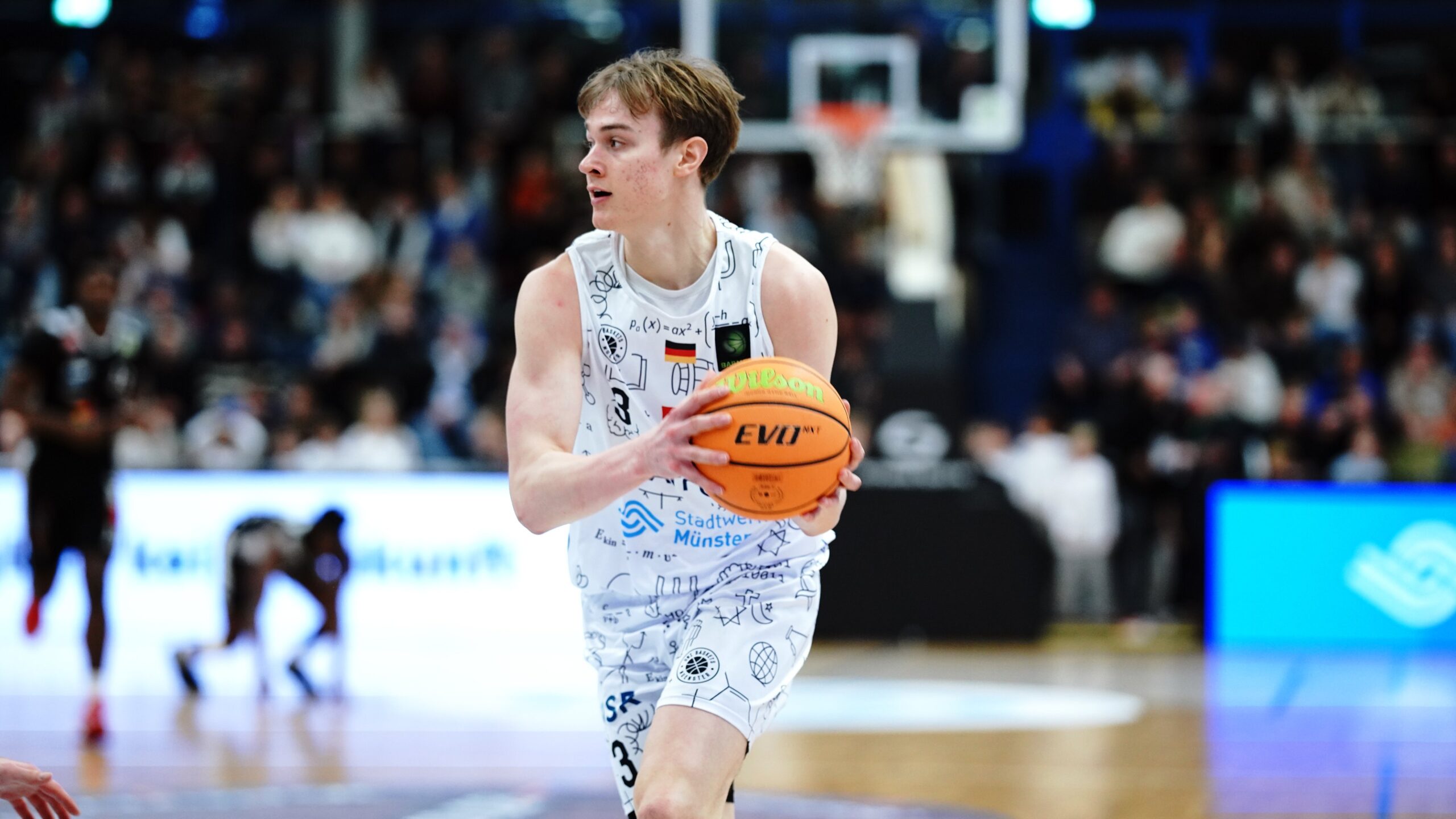 Cheftrainer Götz Rohdewald fehlten weiterhin Adam Touray und Julius Ferber. Über zwei Minuten ohne Punkte und Physis in der Defense ermöglichten den Paderbornern einen Einstieg nach Maß (3:8, 3.). Dann akklimatisierten sich die Münsteraner, wurden deutlich griffiger und kamen über einen blitzgescheiten Fastbreak mit Anspiel von Bo Hodges auf Paul Viefhues zur ersten Führung (11:10, 6.). In der zweiten Hälfte des Auftaktviertels spielte das Team von Götz Rohdewald variabel, energisch im Rebounding und kam im Wechsel von guten Korbaktionen und über vier verschiedene Dreierschützen zur 28:23-Führung nach Abschnitt eins.