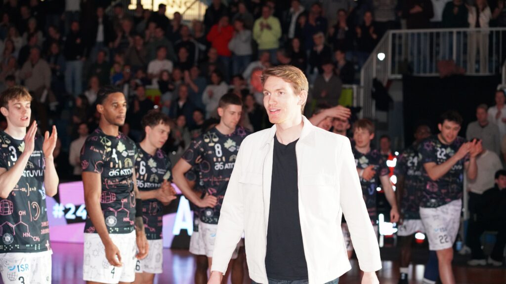 Der A2-Nationalspieler, der in seiner erfolgreichen Karriere zwei Aufstiege aus der Viertklassigkeit bis in die 2. Bundesliga mit seinem Heimatklub feierte, ist damit der vierte Münsteraner Akteur, dem diese Ehre zuteil wird. „Du hast die Mannschaft geprägt wie kaum ein anderer und deswegen sind wir heute hier, die Nummer 7 hochzuziehen“, sagte deshalb Meinhard Neuhaus, Präsident des UBC Münster, in seiner Rede. „Die Nummer 7 war auch meine Nummer, Helge hatte in seinen Teams auch immer die Nummer 7“, sagte Neuhaus mit einem Augenzwinkern weiter und hob hervor: „Aber du bist derjenige, warum diese Nummer 7 unter die Hallendecke gezogen wird.“