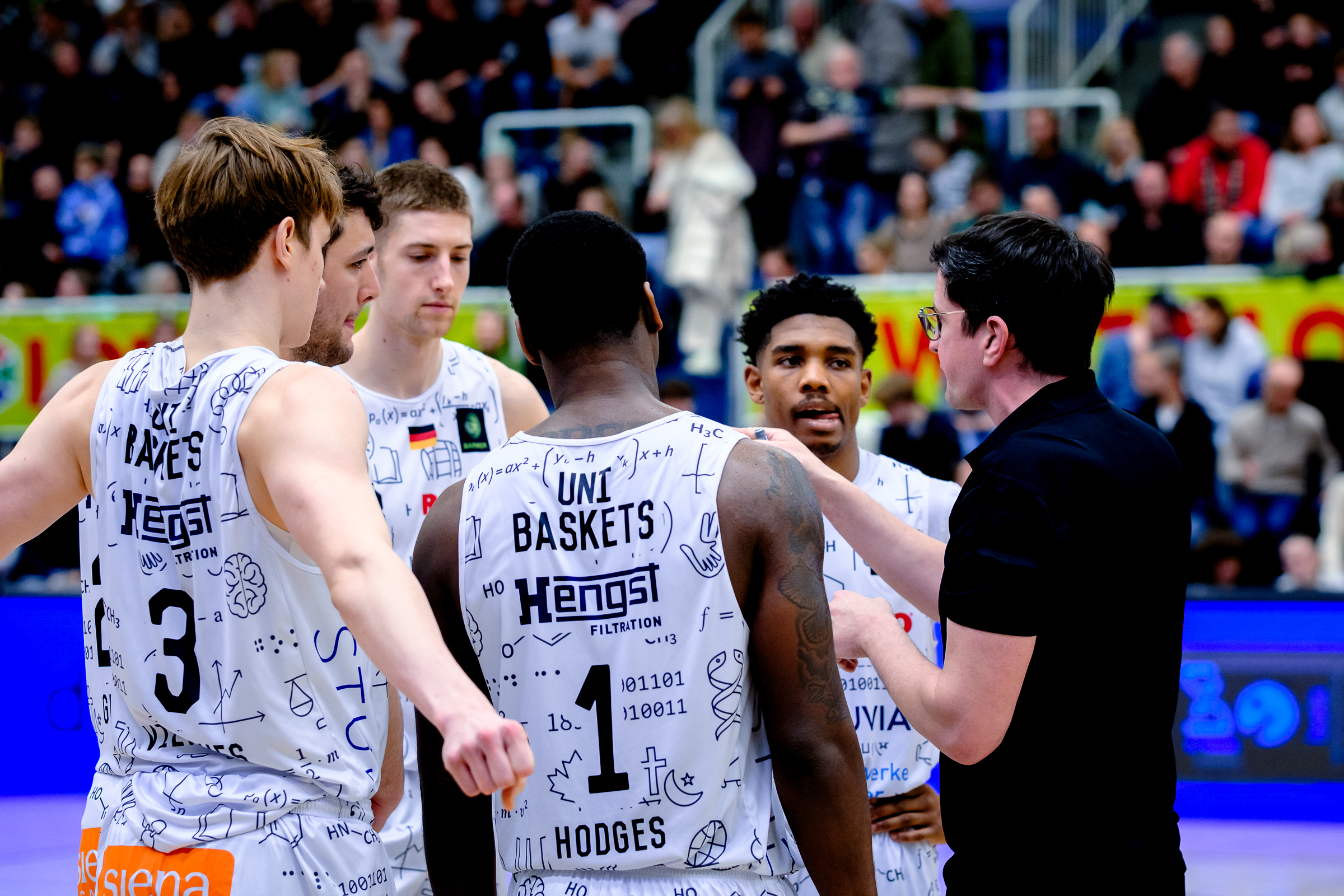 Nach den letzten Enttäuschungen in der BARMER 2. Basketball Bundesliga ProA nehmen die Uni Baskets in der Neckarstadt einen neuen Anlauf. „Wir brauchen einen Sieg“, erklärte Cheftrainer Götz Rohdewald am Donnerstagmittag im Medientalk. „Das wissen wir alle und wir arbeiten dafür, dass wir einen kriegen.“ Mit einem Auswärtserfolg würden sich die Chance deutlich erhöhen, Tabellenplatz 17 noch vor Weihnachten verlassen zu können – zumal vor den Festtagen noch zwei Heimpartien anstehen (Tickets). Dafür aber müssen die Uni Baskets am Samstag an Selbstvertrauen und Konstanz über 40 Minuten zulegen. „Wir versuchen das Spiel zu gewinnen, müssen alles dafür geben“, sagte Rohdewald.