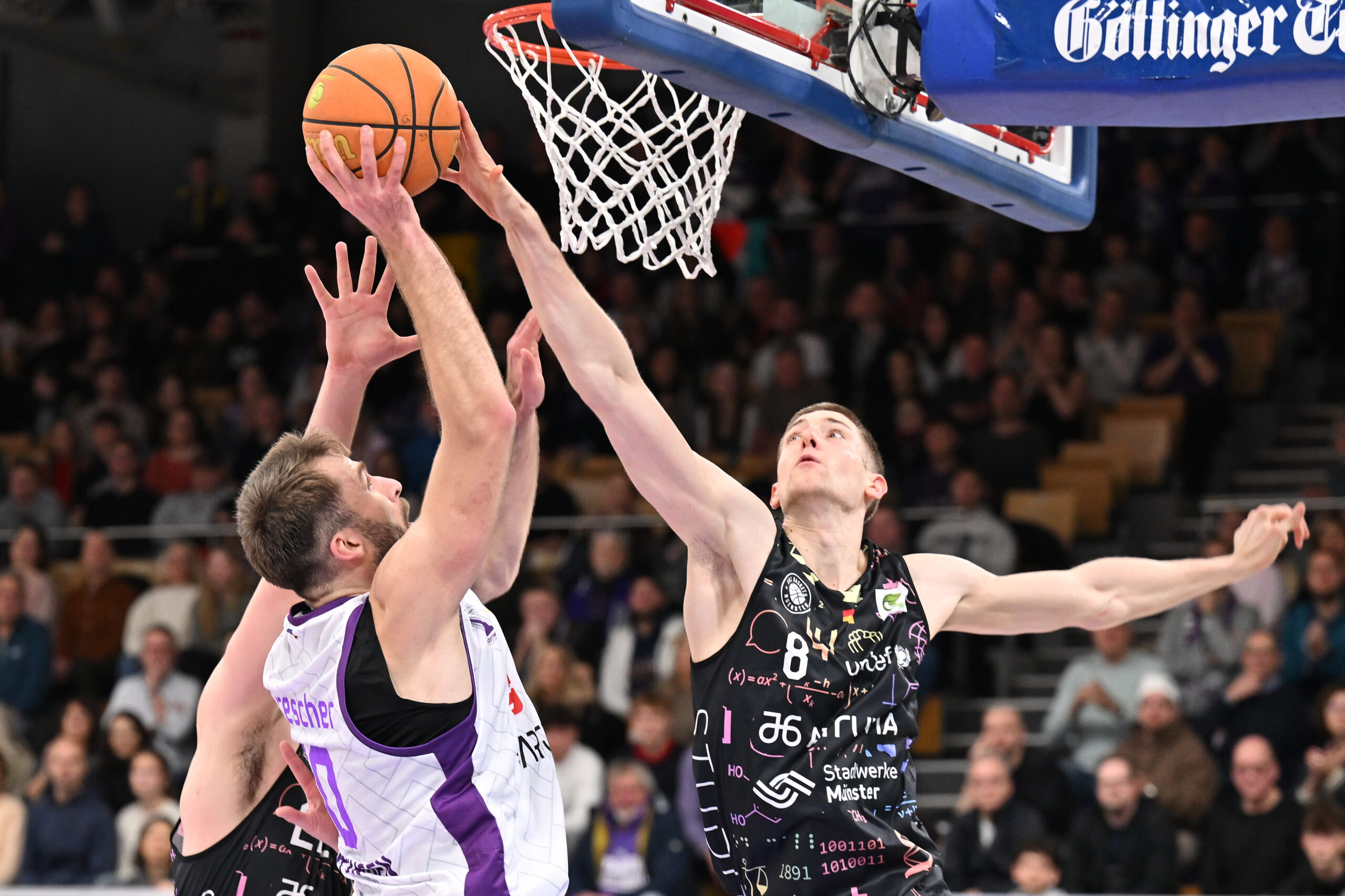 Bei der BG Göttingen mussten die Uni Baskets die gewohnten Ausfälle Adam Touray, Bo Hodges und Julius Ferber verkraften, während ebenfalls dezimierte Gastgeber wieder auf die Rückkehr von Robin Lodders bauen konnten. Die Begegnung begann ausgeglichen. Oli Pahnke eröffnete mit fein erspieltem Distanztreffer. 11:10 lagen die Gäste Mitte des Auftaktviertels nach fokussiertem Vortrag und Jason Anis Dreier vorne, ehe sein eher unglückliches als gewolltes unsportliches Foul starke drei Minuten der Göttinger einleitete. Spielstark und defensiv aggressiv erarbeiteten sich die Veilchen über einen 13:0-Lauf eine erste zweistellige Führung (23:11, 8.). Dann konterten die Münsteraner über stilbildende Defensive und einen Handkontakt-Dreier Cosmo Grühns sowie Freiwürfe von Neil Masnic. Münsteraner Ballverluste erst zum Ende des Viertels verhinderten ein noch besseres Ergebnis nach Abschnitt eins (24:16).
