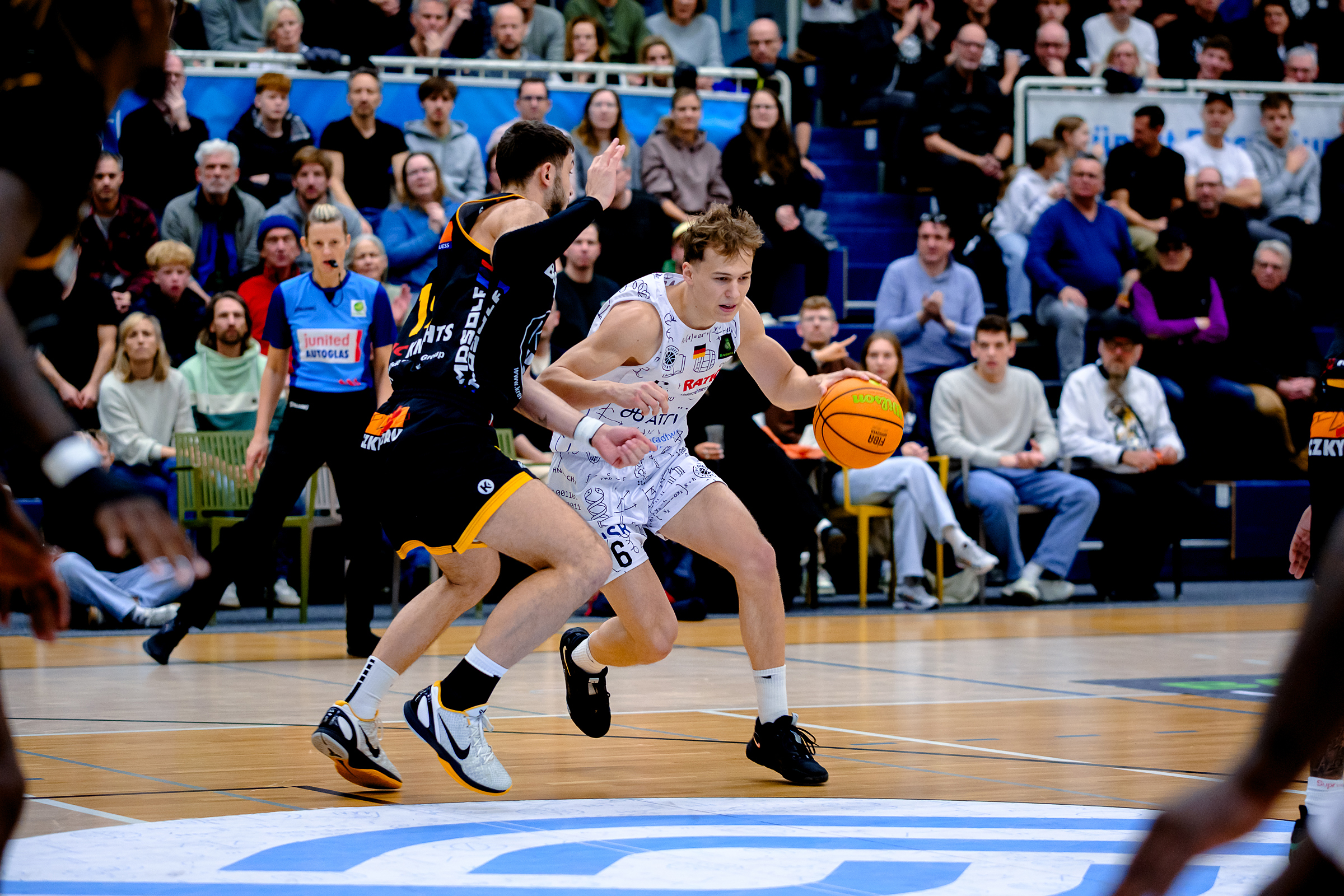 „Wir haben noch zwei Trainingseinheiten und versuchen, Phil irgendwie in der Kürze der Zeit in die Mannschaft reinzukriegen. Das ist die Hauptaufgabe im Moment. Natürlich braucht es Zeit, wenn jemand zu dieser Phase der Saison ankommt. Das wird am Anfang noch ein bisschen holprig sein“, berichtete Götz Rohdewald am Donnerstagmittag. Der Cheftrainer der Uni Baskets ist aber guter Dinge: „Die Integration läuft sehr gut. Menschlich passt er sehr gut und er ist spielerisch auch gut. Wir fangen langsam an und hoffen, dass wir in Kirchheim schon ein bisschen von ihm sehen können.“ Rohdewald dämpft die Erwartungshaltung gewohnt pragmatisch: „Aber man darf auch nicht zu viel erwarten, weil es einfach schwierig ist nach der Kürze der Zeit und Vorbereitung.“