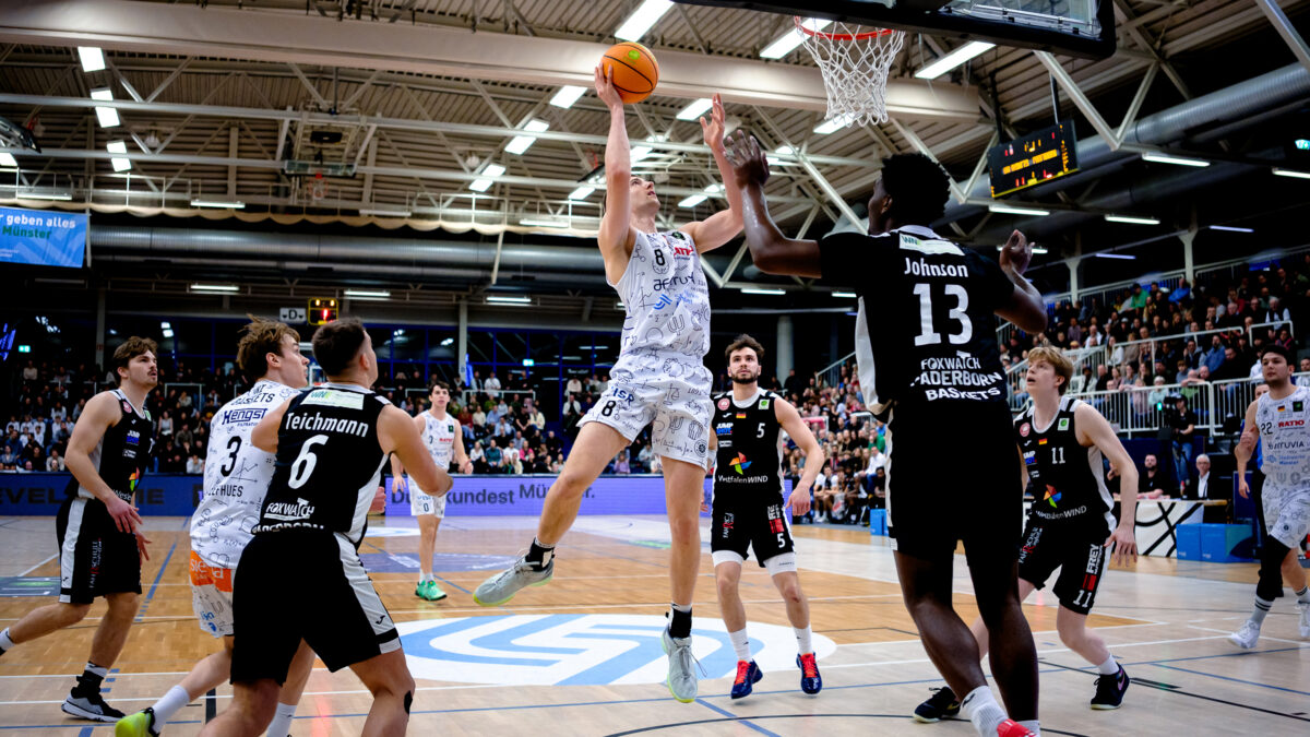 Im letzten Auswärtsspiel in Gießen gewannen die Münsteraner mit 77:74 – auch dank grandioser Unterstützung der mitgereisten Fans der Uni Baskets. Auf diese setzt das Team von Götz Rohdewald erneut beim Westfalenduell am 20. Februar.