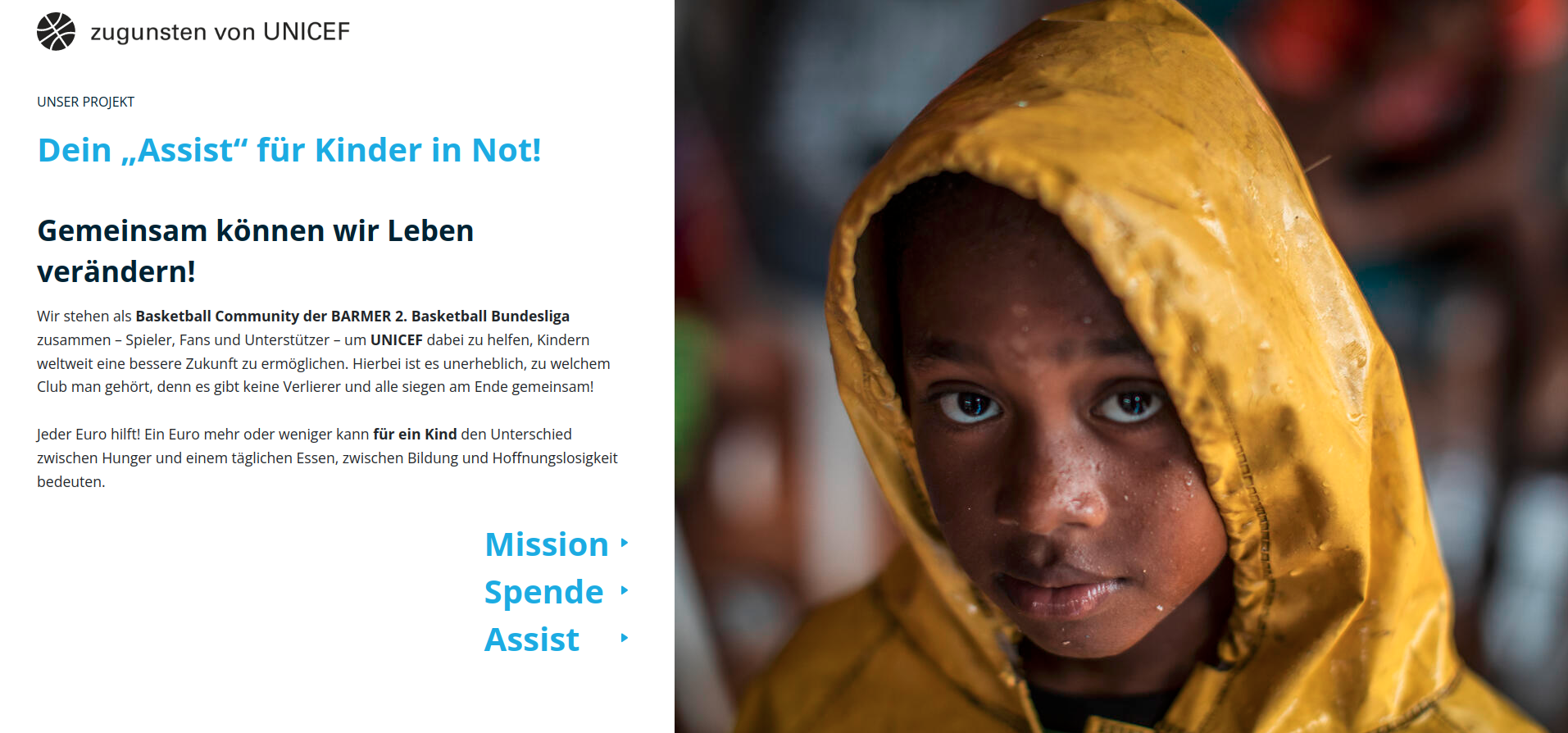 Die Spendenaktion startet zwar in der Spielpause der BARMER 2. Basketball Bundesliga, läuft aber über diese hinaus weiter, um möglichst viele Unterstützer zu erreichen. Auch kleine Spenden können gemeinsam große Auswirkungen erzielen und konkrete Hilfe ermöglichen, dazu beitragen, den Zugang zu Bildung, sauberem Wasser, medizinischer Versorgung und Schutz zu verbessern, und die Krise dieser Kinderrechte einzudämmen.